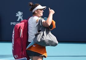 Теннисный турнир Miami Open 2019. Канадская теннисистка Бьянка Андрееску после матча против эстонской теннисистки Анетт Контавейт.