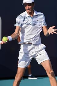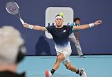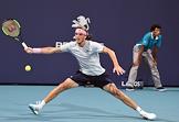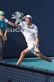 Теннисный турнир Miami Open 2019. Бельгийский теннисист Давид Гоффен во время матча против итальянского теннисиста Марко Чеккинато.