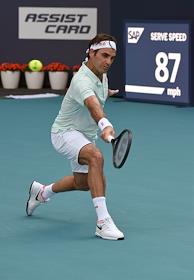 Теннисный турнир Miami Open 2019. Швейцарский теннисист Роджер Федерер во время матча против сербского теннисиста Филипа Краиновича.