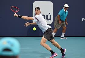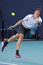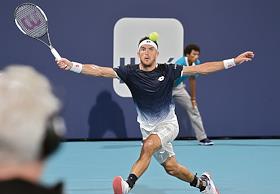 Теннисный турнир Miami Open 2019. Американский теннисист Рейли Опелка во время матча против российского теннисиста Даниилы Медведева.