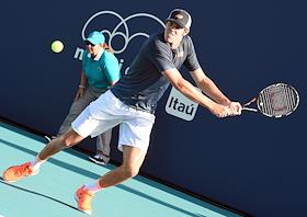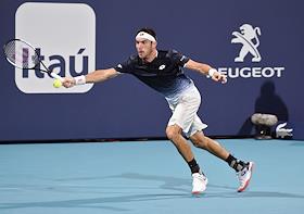 Теннисный турнир Miami Open 2019. Аргентинский теннисист Леонардо Майер во время матча.