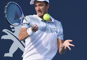 Теннисный турнир Miami Open 2019. Российский теннисист Даниил Медведев во время матча против американского теннисиста Рейли Опелка.