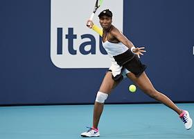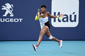 Теннисный турнир Miami Open 2019. Американская теннисистка Винус Уильямс во время матча против румынской теннисистки Симоны Халеп.
