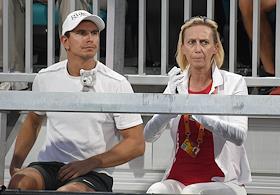 Теннисный турнир Miami Open 2019. Мама и тренер канадского теннисиста Дениса Шаповалова Тесса Шаповалова (справа) на турнире.