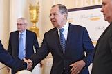 Заседание попечительского совета Фонда публичной дипломатии им. А.М.Горчакова в Доме приемов МИД России. Министр иностранных дел России Сергей лавров (справа) во время заседания.