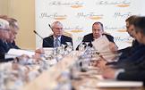 Заседание попечительского совета Фонда публичной дипломатии им. А.М.Горчакова в Доме приемов МИД России. Председатель попечительского совета Фонда апостола Андрея Первозванного и Центра национальной славы Владимир Якунин во время заседания.