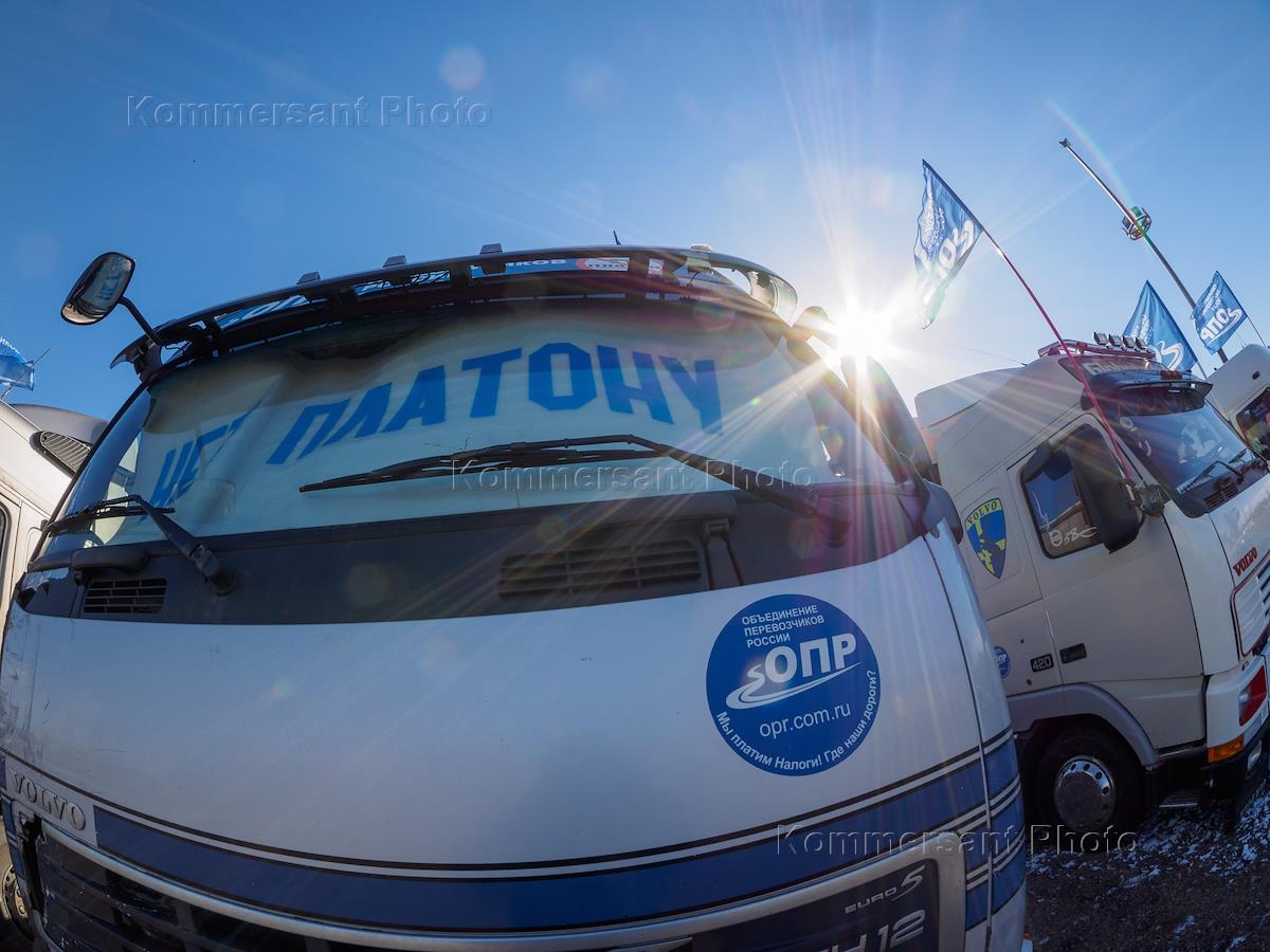 Протестная стоянка водителей большегрузов против работы системы "Платон" в районе перекрестка проспекта Маршала Жукова и улицы Дорога на Турухтанные острова.