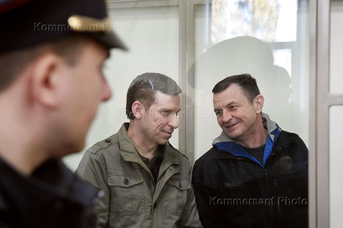 Оглошение приговора в отношении членов украинской диверсионно-террористической группы Алексея Бессарабова и Владимира Дудки, обвиняемых в приготовлении к совершению диверсии в составе организованной группы, в хранении боеприпасов и взрывных устройств, состялось в Городском суду Севастополя. Члены украинской диверсионно-террористической группы Алексей Бассарабов (в центре) и Владимир Дудка (справа) во время заседания суда.