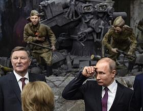 Торжественная церемония открытия всероссийской акции "Вахта памяти - 2019" прошла в Центральном музее Великой Отечественной войны (Музей Победы) на Поклонной горе. Специальный представитель президента России по вопросам природоохранной деятельности, экологии и транспорта Сергей Иванов (слева) и президент России Владимир Путин (справа) во время осмотра экспозиции музея.