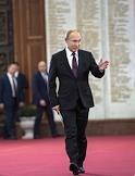 Торжественная церемония открытия всероссийской акции "Вахта памяти - 2019" в Центральном музее Великой Отечественной войны (Музее Победы) на Поклонной горе. Президент России Владимир Путин во время церемонии.