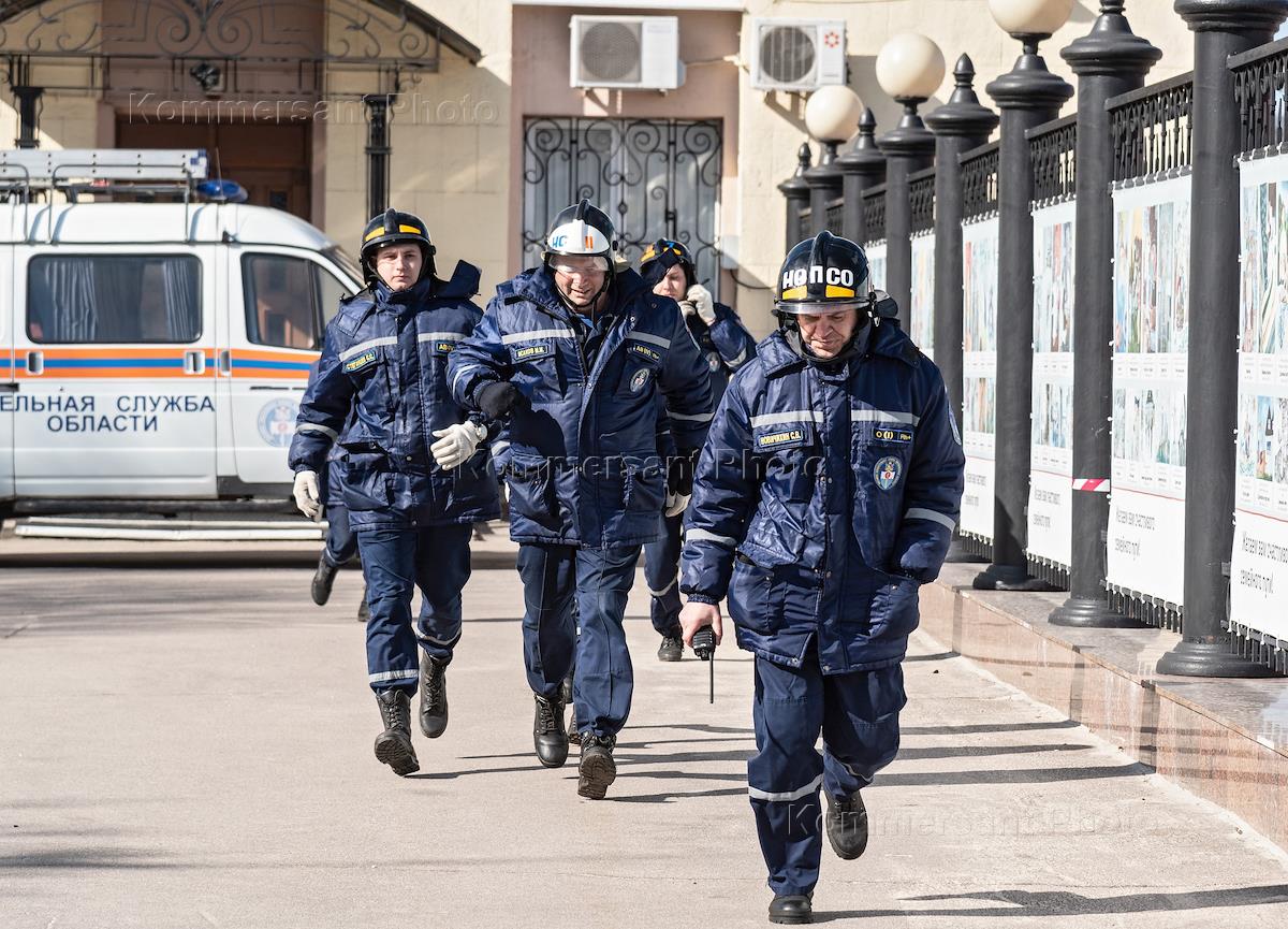 Совместные тактико-специальные учения медицинских и специальных служб по оказанию в экстренной форме медицинской помощи пассажирам на железнодорожном транспорте прошли на железнодорожной станции Воронеж-1. Сотрудники ОМОН во время учений.