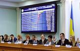 Заседание Центральной избирательной комиссии (ЦИК) Украины, где объявили официальные итоги первого тура голосования на выборах президента страны, который прошел 31 марта. Председатель ЦИК Украины Татьяна Слипачук (третья справа) во время заседания.