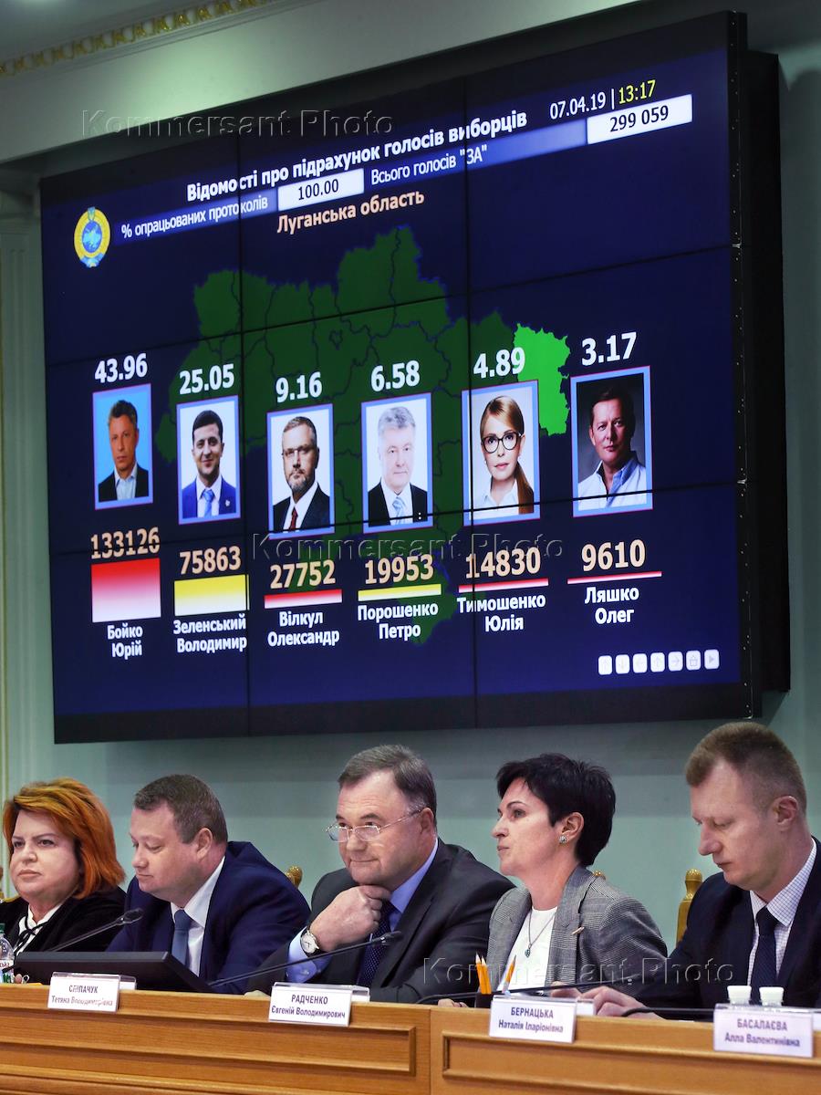 Заседание Центральной избирательной комиссии (ЦИК) Украины, где объявили официальные итоги первого тура голосования на выборах президента страны, который прошел 31 марта.