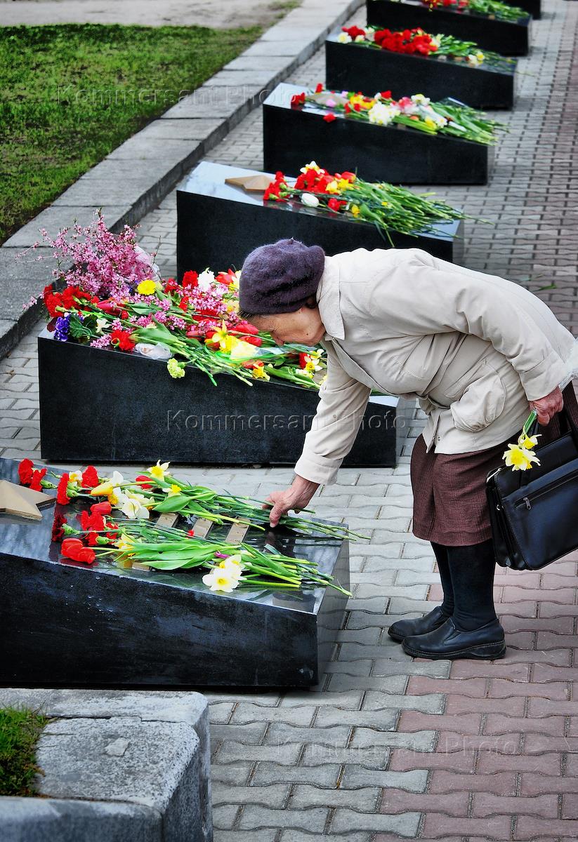 Мемориал Славы на площади Победы - памятник воинам Алтайского края, погибшим в годы Великой Отечественной войны. Ветераны во время празднования Дня Победы.