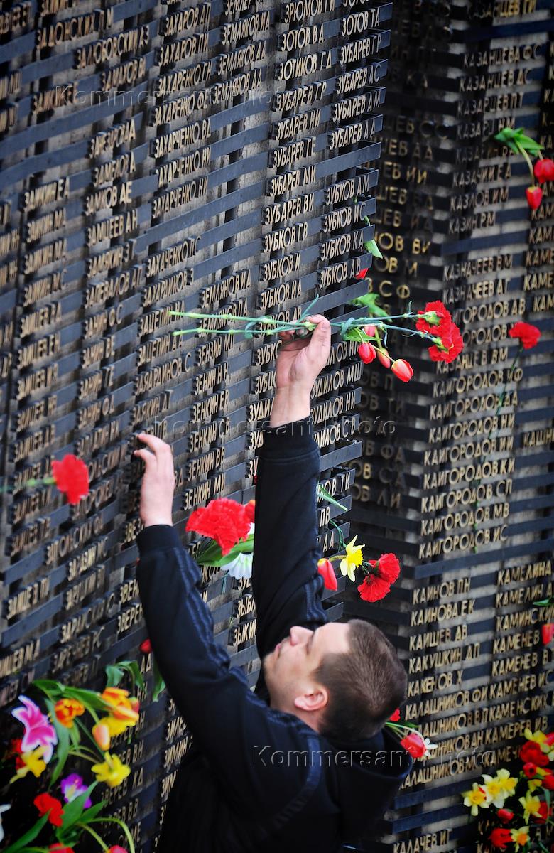 Мемориал Славы на площади Победы - памятник воинам Алтайского края, погибшим в годы Великой Отечественной войны. Каша из полевой кухни во время празднования Дня Победы.
