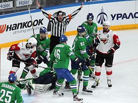 Континентальная хоккейная лига (КХЛ). Плей-офф. Финал - Восток. 6-й матч. Матч между командами "Салават Юлаев" (Уфа) - "Авангард" (Омск) прошел на стадионе "Уфа-Арена".