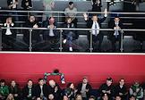 Континентальная хоккейная лига (КХЛ). Плей-офф. Финал - Восток. 6-й матч. Матч между командами "Салават Юлаев" (Уфа) - "Авангард" (Омск) на стадионе "Уфа-Арена". Главный тренер команды "Авангард" Боб Хартли (в центре) во время матча.