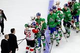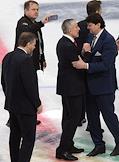 Континентальная хоккейная лига (КХЛ). Плей-офф. Финал - Восток. 6-й матч. Матч между командами "Салават Юлаев" (Уфа) - "Авангард" (Омск) прошел на стадионе "Уфа-Арена". Главный тренер команды "Авангард" Боб Хартли (справа) после матча.