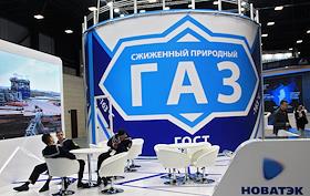 V Международный арктический форум "Арктика - территория диалога" в конгрессно-выставочном центре "Экспофорум". Стенд компании Новатэк в виде банки сгущенки, сжиженный природный газ.