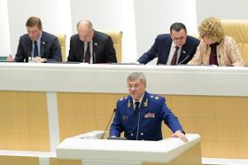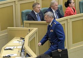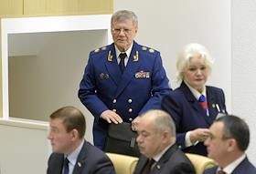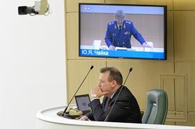 Пленарное заседание Совета Федерации (СФ) России. Генеральный прокурор России Юрий Чайка во время заседания.