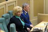 Пленарное заседание Совета Федерации (СФ) России. Генеральный прокурор России Юрий Чайка (справа) и уполномоченный по правам человека в России Татьяна Москалькова (слева) во время заседания.