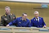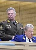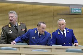 Пленарное заседание Совета Федерации (СФ) России. Слева направо: первый заместитель главного военного прокурора России Евгений Иванов, заместители генерального прокурора России Виктор Гринь и Леонид Коржинек во время заседания.