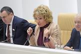 Пленарное заседание Совета Федерации (СФ) России. Уполномоченный по правам человека в России Татьяна Москалькова во время заседания.