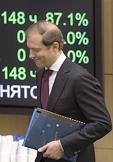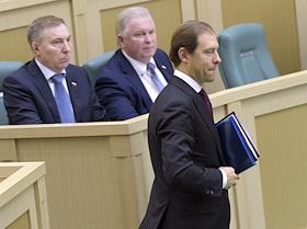 Пленарное заседание Совета Федерации (СФ) России. Министр промышленности и торговли России Денис Мантуров во время заседания.