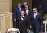 Пленарное заседание Совета Федерации (СФ) России. Глава Государственного совета (верхняя палата парламента) Омана Яхья бен Махфуз Аль-Манзери (слева) и председатель комитета СФ России по международным делам Константин Косачев (справа) во время заседания.