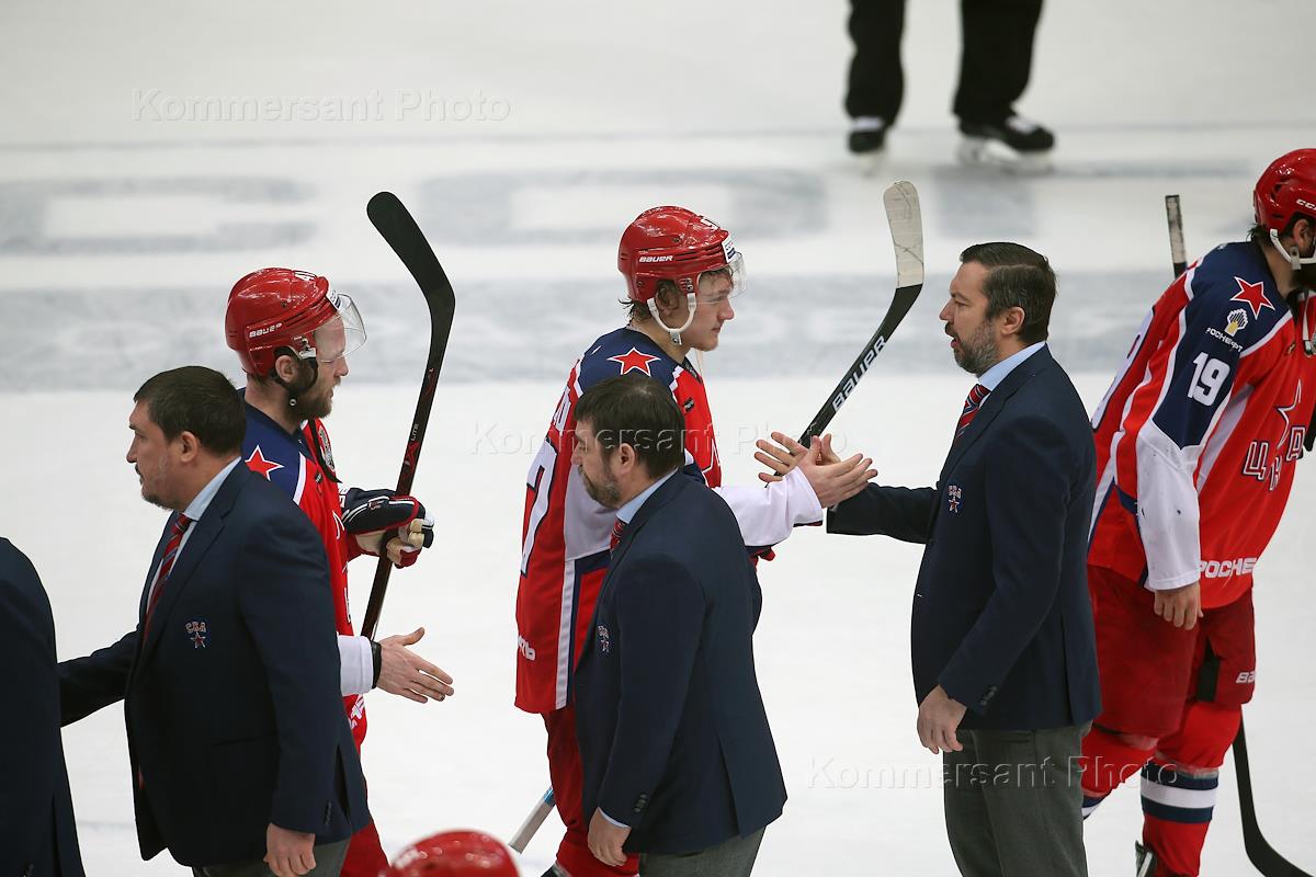Континентальная хоккейная лига (КХЛ). Матч между командами ЦСКА (Москва) - СКА (Санкт-Петербург) на стадионе "ЦСКА-Арена". Руководители хоккейного клуба ЦСКА после окончания матча.