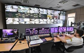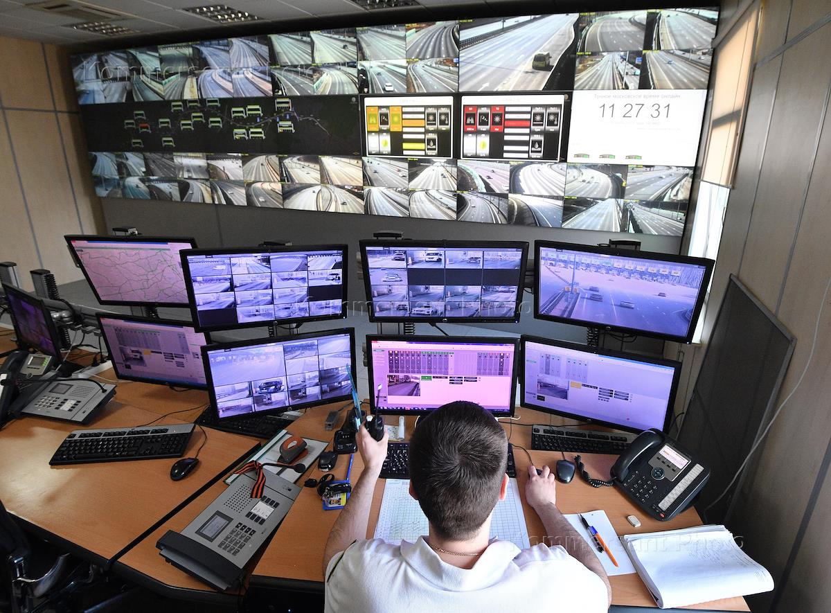 Межведомственные учения по ликвидации последствий чрезвычайной ситуации на автомобильном транспорте на 4-ом километре автомобильной дороги М-1 "Беларусь". Пульт видеонаблюдения на автодороге.