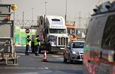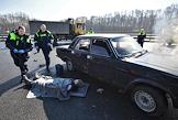 Межведомственные учения по ликвидации последствий чрезвычайной ситуации на автомобильном транспорте на 4-ом километре автомобильной дороги М-1 "Беларусь". Сотрудники ДПС ГИБДД во время проверке автотранспорта на трассе.