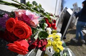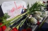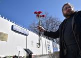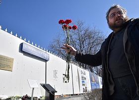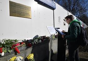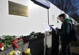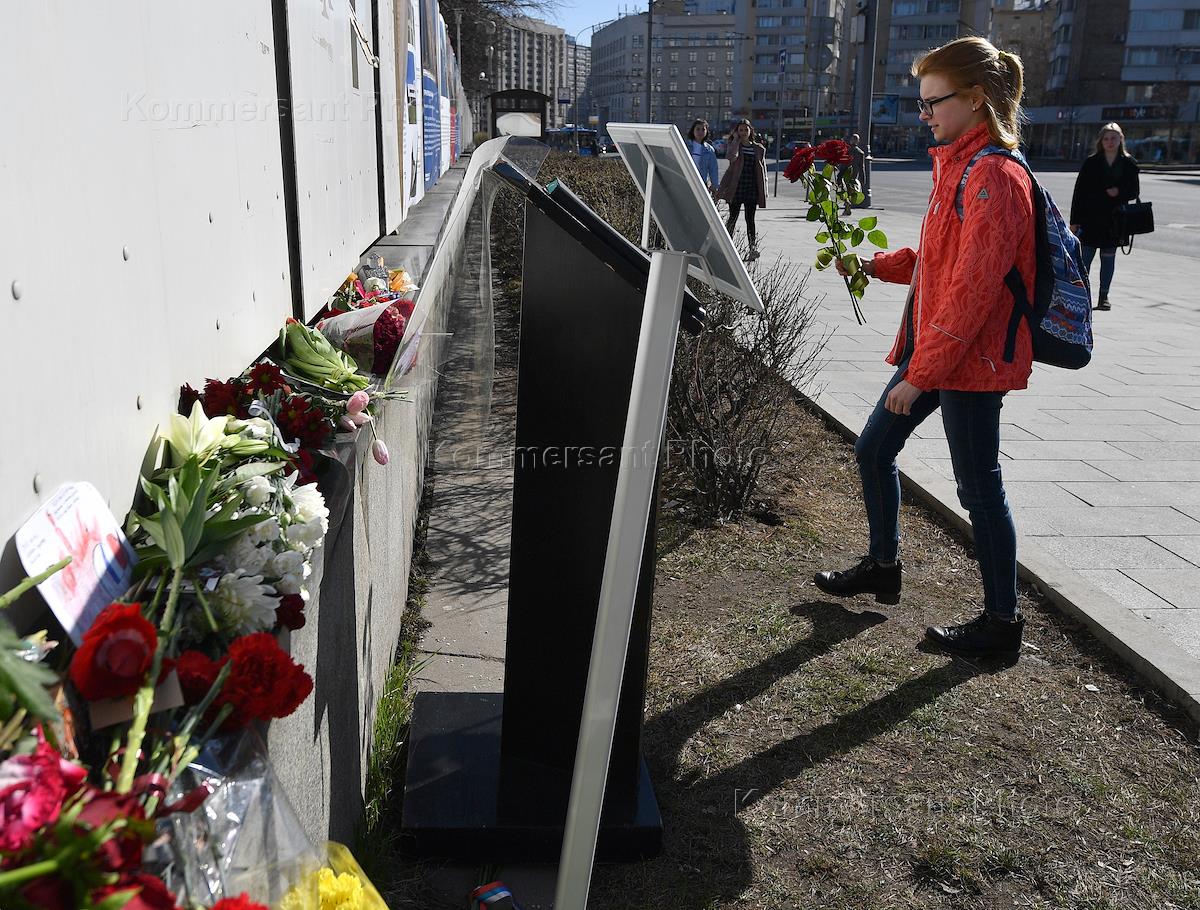 Цветы у здания Посольства Франции, в связи с пожаром в соборе Парижской Богоматери (Notre Dame de Paris) в Париже.