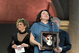XXV Церемония вручения Российской Национальной театральной премии "Золотая Маска" прошла на Исторической сцене Государственного академического Большого театра (ГАБТ). Художественный руководитель театра "Кукольный формат" Анна Викторова во время церемонии.