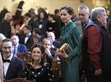 XXV Церемония вручения Российской Национальной театральной премии "Золотая Маска" прошла на Исторической сцене Государственного академического Большого театра (ГАБТ). Слева направо: президент премии и фестиваля "Золотая маска", актер Игорь Костолевский, актеры Чулпан Хаматова и Антон Пахомов во время церемонии.