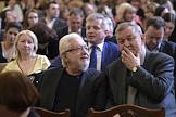 XXV Церемония вручения Российской Национальной театральной премии "Золотая Маска" прошла на Исторической сцене Государственного академического Большого театра (ГАБТ). Сценограф, художник Сергей Бархин (слева) и художник Мария Трегубова (справа) во время церемонии.