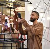 Церемония открытия проекта ГУМ-Red-Line, первой масштабной выставки современного искусства в ГУМе, которая прошла в рамках Открытого фестивала "Черешневый лес". Художник Андрей Бартенев во время церемонии.