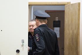 Бывший глава Республики Марий-Эл Леонид Маркелов (справа), обвиняемый в коррупции, перед началом заседания Нижегородского районного суда.