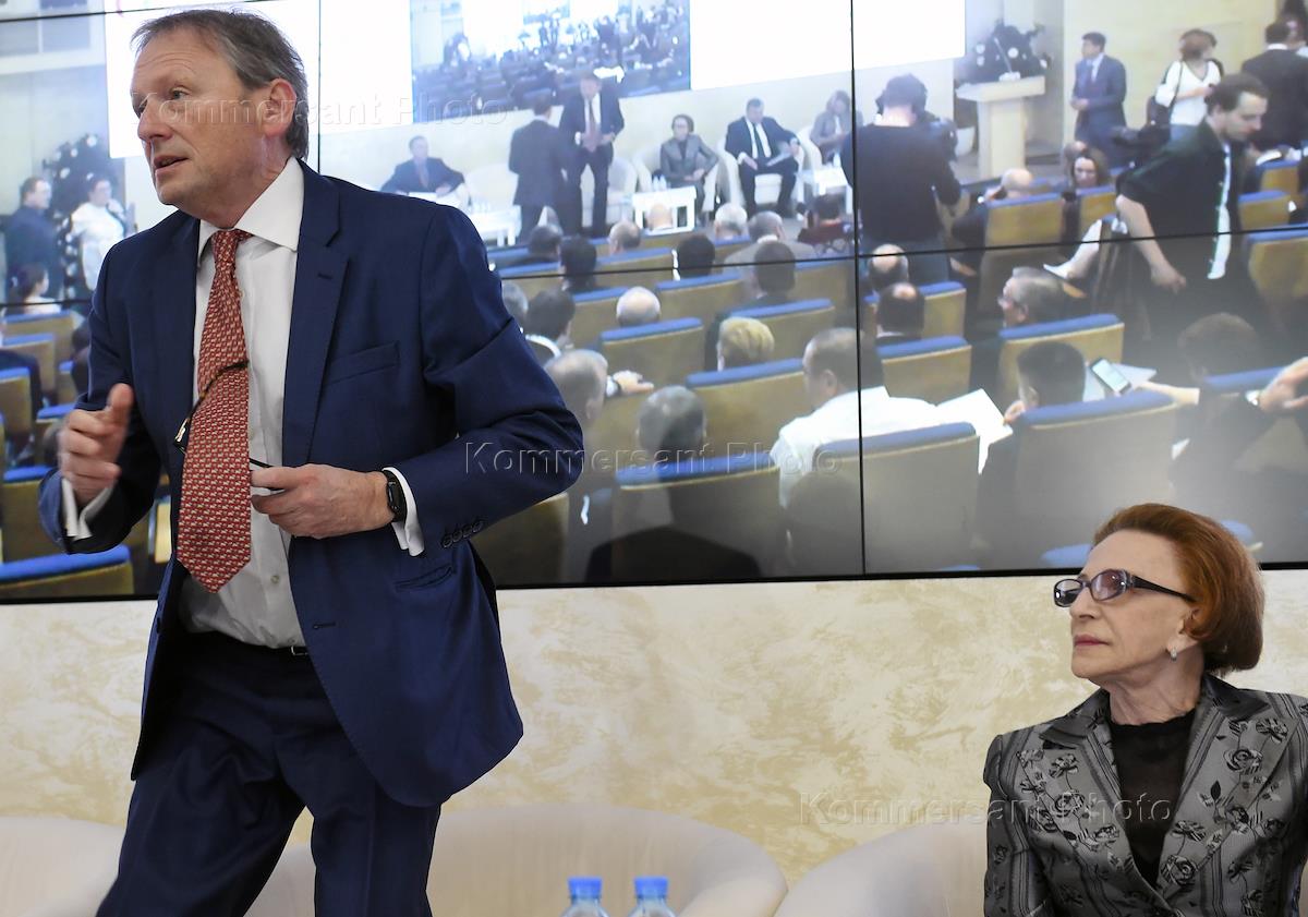 XIII Всероссийская конференция уполномоченных по защите прав предпринимателей состоялась в Общественной палате России. Уполномоченный при президенте России по защите прав предпринимателей Борис Титов (слева) и член Совета при президенте России по правам человека Тамара Морщакова (справа) во время конференции.