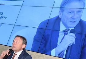 XIII Всероссийская конференция уполномоченных по защите прав предпринимателей состоялась в Общественной палате России. Уполномоченный при президенте России по защите прав предпринимателей Борис Титов во время конференции.