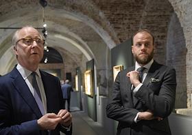 The opening ceremony of the exhibition of top lots Sotheby's in the "Ruin" of the Schusev State Museum of Architecture. Chairman of the Board of Directors of Sotheby's Europe and the CIS Lord Mark Poltimore (left) and head of the Sotheby’s auction of Russian painting Reto Barmettler (right) at the ceremony.