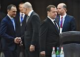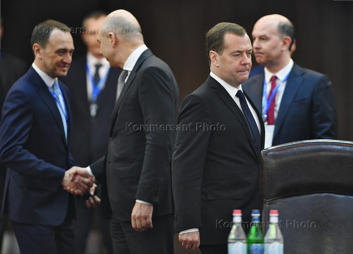 Рабочая поездка председателя правительства Дмитрия Медведева в Армению. Председатель правительства России Дмитрий Медведев во время заседания Евразийского межправительственного совета.