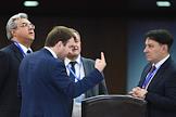 Рабочая поездка председателя правительства Дмитрия Медведева в Армению. Справа налево: первый заместитель председателя Правительства России - министр финансов России Антон Силуанов, министр экономического развития России Максим Орешкин и первый заместитель руководителя Федеральной таможенной службы России Руслан Давыдов перед началом заседания Евразийского межправительственного совета в расширенном составе.