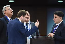 Рабочая поездка председателя правительства Дмитрия Медведева в Армению. Первый Заместитель Премьер-Министра Республики Казахстан Аскар Мамин (в центре) во время заседания Евразийского межправительственного совета. Заседание прошло в спортивно-концертном комплексе имени Карена Демирчяна.