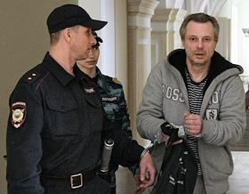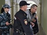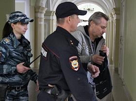 Бывший директор ликвидированной компани СУ СКР Александр Пашкин (справа), обвиняемый в мошенничестве при строительстве здания СУ СК по Нижегородской области, перед началом заседания Нижегородского районного суда.