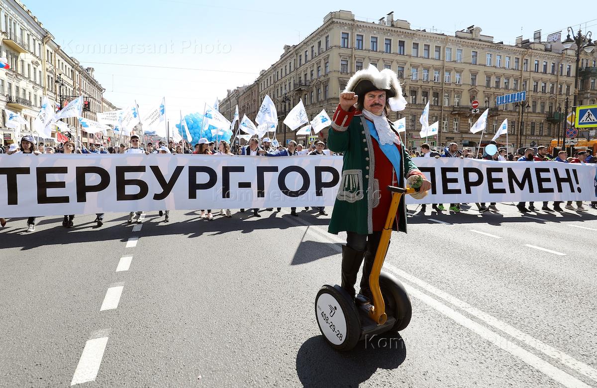День Международной солидарности трудящихся. Первомайская демонстрация в Санкт-Петерурге.