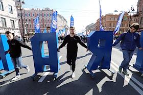 Участники первомайской демонстрации в Санкт-Петербурге.