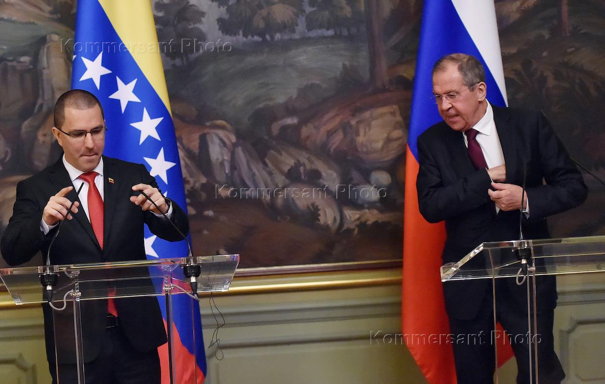 Встреча министра иностранных дел России Сергея Лаврова и министра иностранных дел Венесуэлы Хорхе Арреаса прошла в Доме приемов МИД России. Министр иностранных дел Венесуэлы Хорхе Арреаса (слева) и министр иностранных дел России Сергей Лавров (справа) на пресс-конференции по итогам встречи.