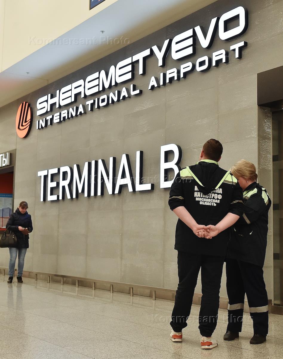 The aftermath of a fire on the Sukhoi Superjet-100 aircraft with a number RA-89098 of Aeroflot Airlines which flew to Murmansk from Moscow and made an emergency landing at the Sheremetyevo Airport. Passengers in the airport lounge.