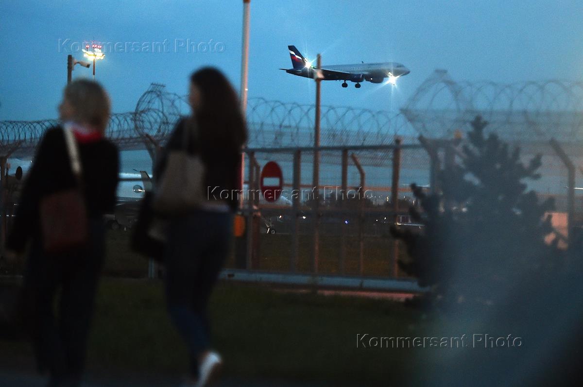 Жанровая фотография. Самолеты в аэропорту Шереметьево. Посадка самолета авиакомпании "Аэрофлот".